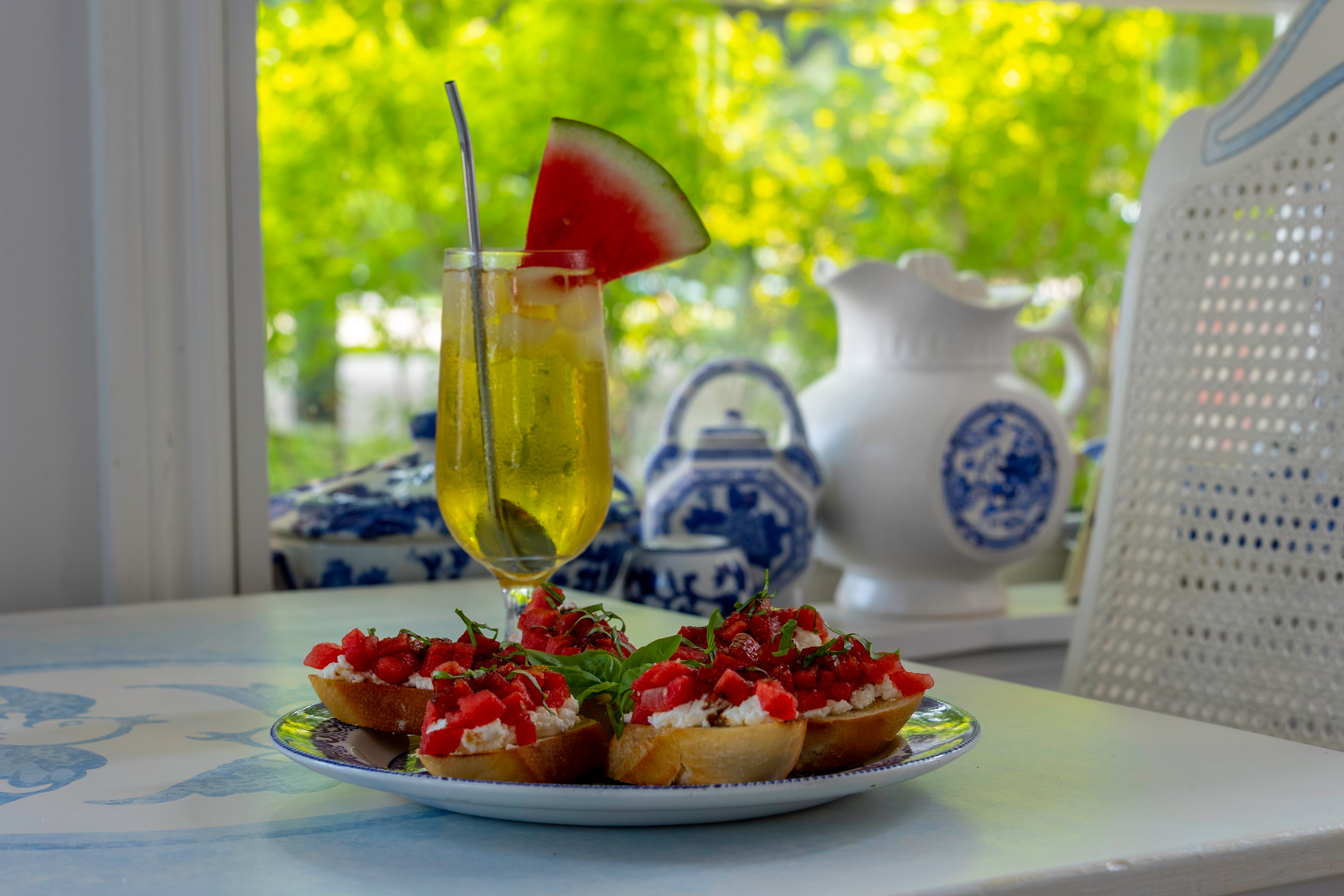 Tea pairing: Blue Willow Watermelon Oolong (slice of watermelon as garnish, optional)